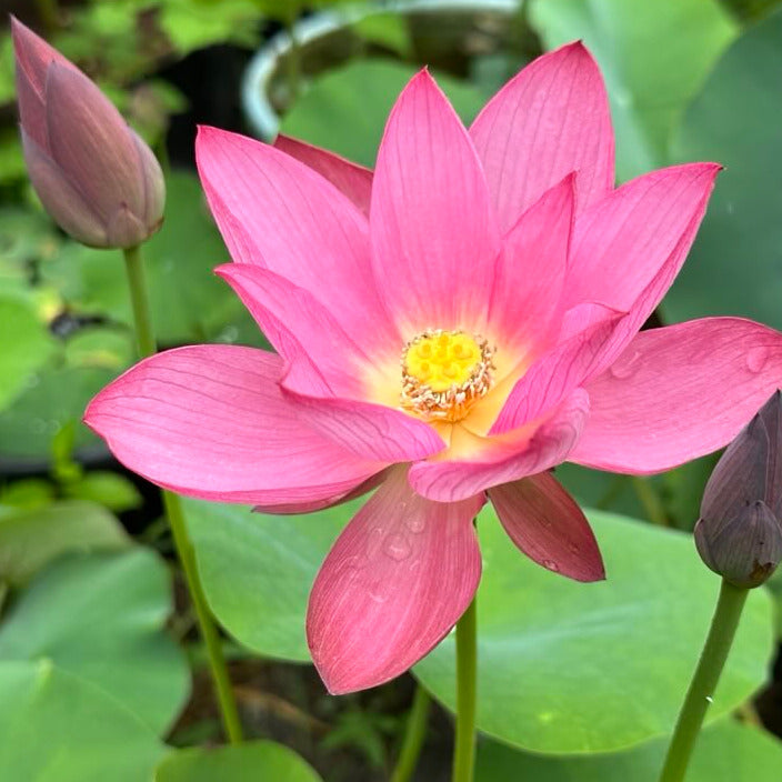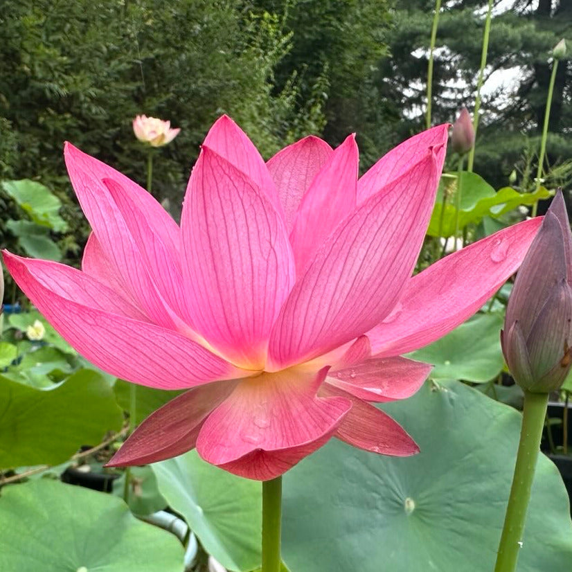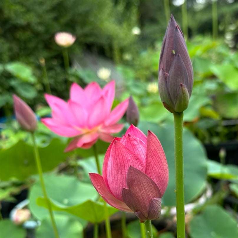 If you are looking for a small lotus, Sparks is one of the most popular and successful. It's a tiny little lotus with impressive foliage and bright red flowers with a long track record in ponds and pots around the world.