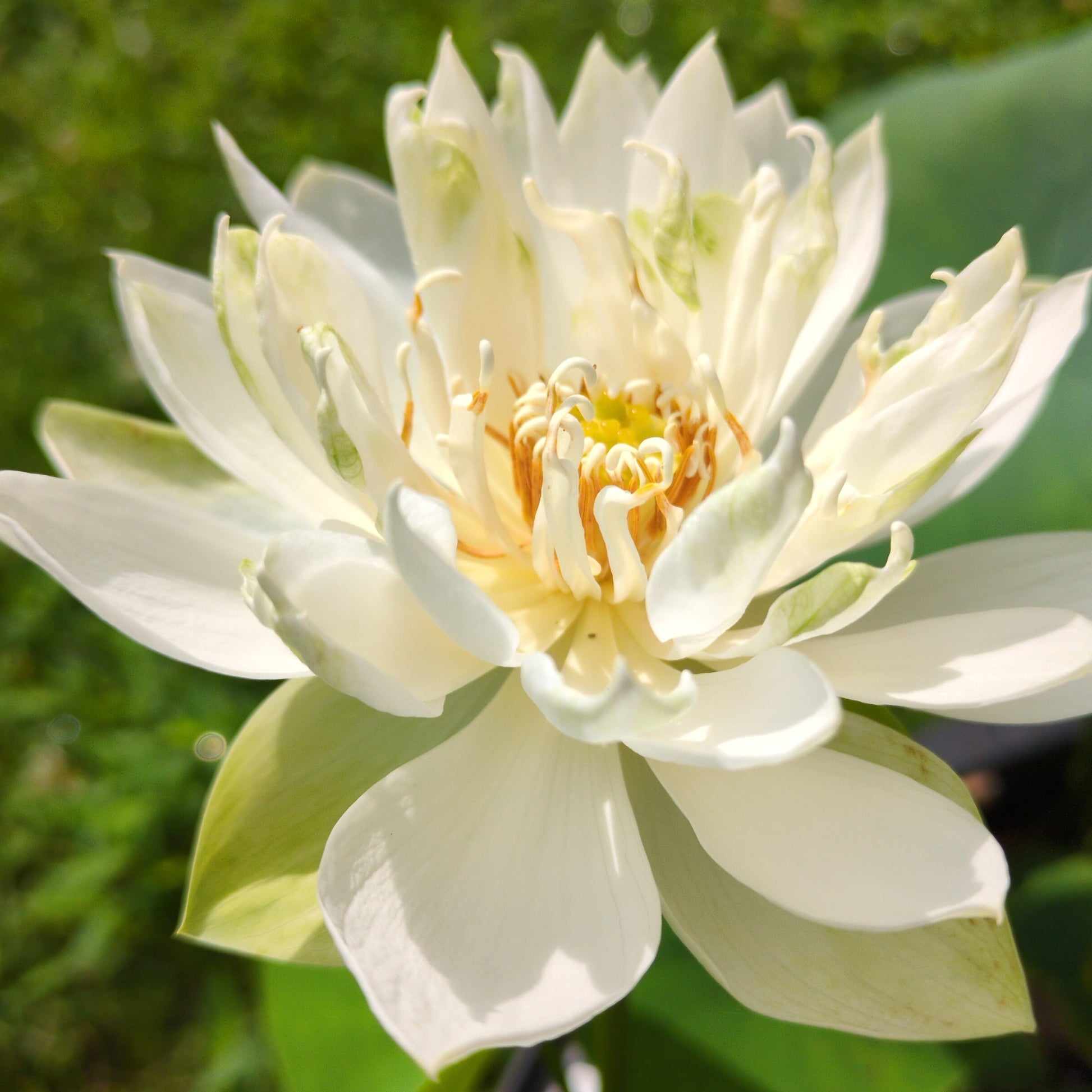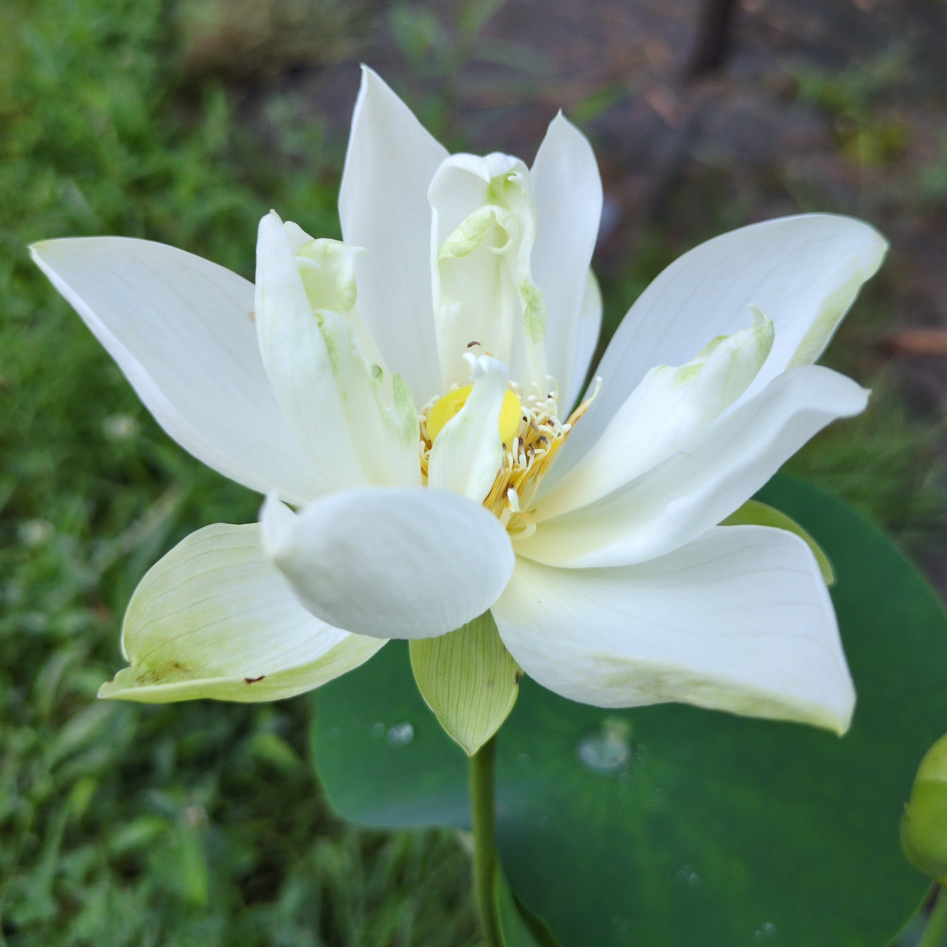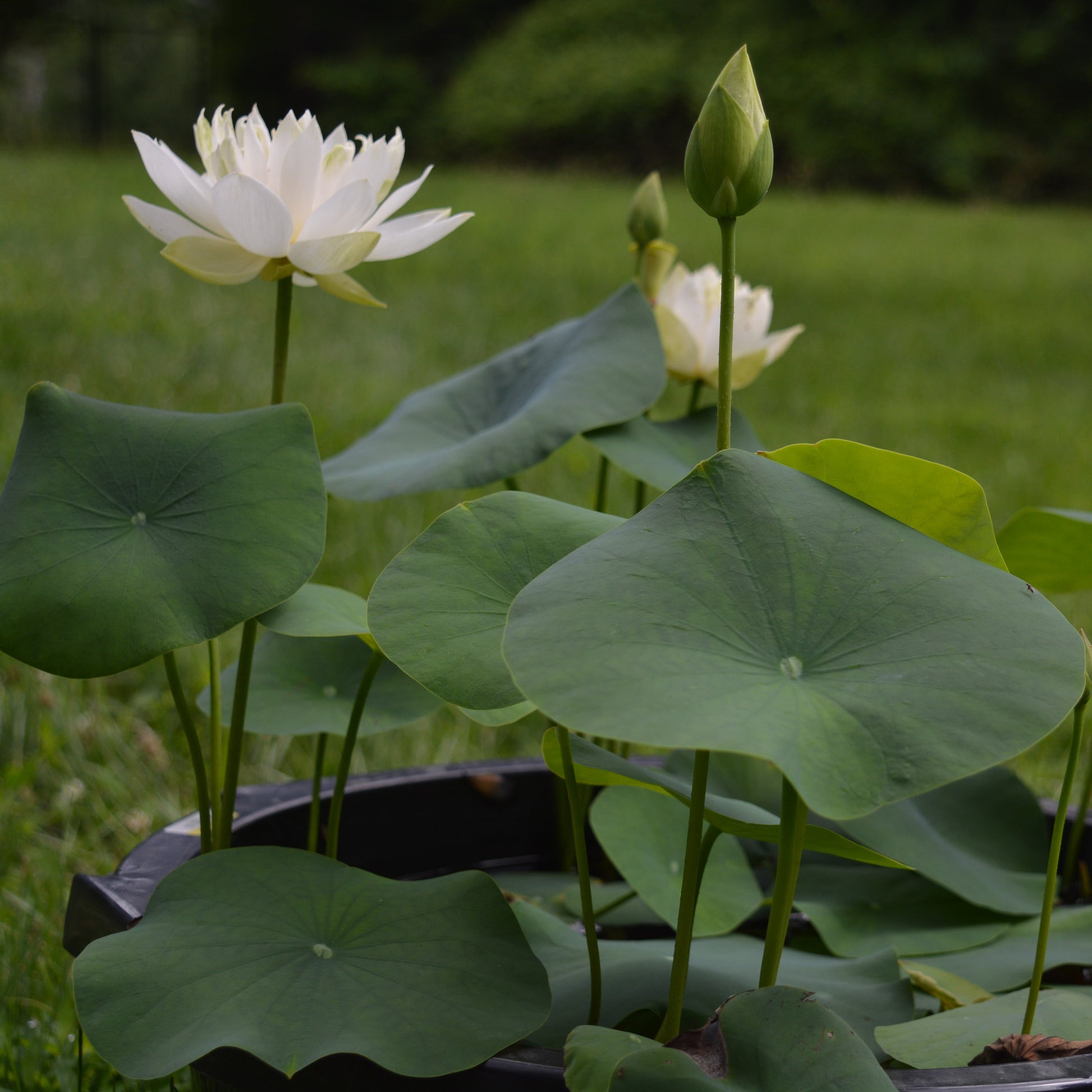 White dot is a micro lotus that packs a punch, cranking out single-petal white blossoms throughout the whole season. Oblong petals cluster around a perfect yellow carpel and bouncy white stamens, creating a classic look. White dot is a perfect addition to your micro collection, but will also thrive and produce bigger leaves in larger pots.